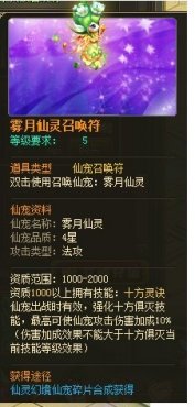 击败万毒宫中的敌人,将有机会获得道具“雾月仙灵碎片”,收集10个雾月仙灵碎片可在轩辕鼎中炼制全新仙宠召唤符——雾月仙灵召唤符!雾月仙灵拥有强大的仙宠出战技能,千万不要错过!