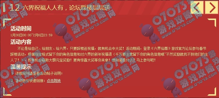 游戏大厅 > 角色扮演 > 六界仙尊 > 新闻公告 > 六界仙尊同贺新春十二大活动闹春辞旧岁