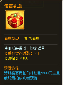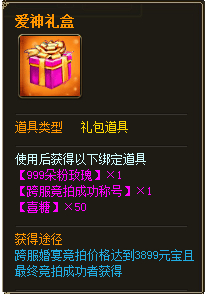 2、竞拍价格超过3899元宝,即可获得【爱神礼盒】;