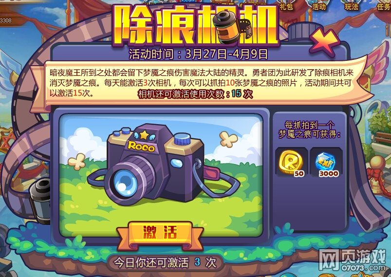 除痕相机总计可以完成15次,每天最多3次,最少5天可以完成全部,激活,拍照,领取经验~