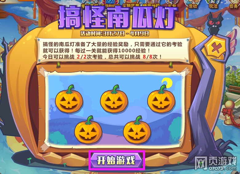 点击游戏界面上方活动下的搞怪南瓜灯,可以打开活动窗口。释放魔法可以完成5轮,每天可以挑战2次,一共可以挑战8次。