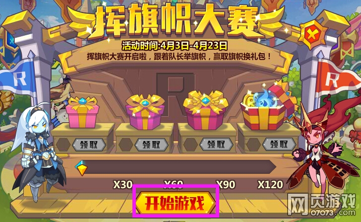玩儿挥旗帜大概3次左右,可以领取今日的奖励。