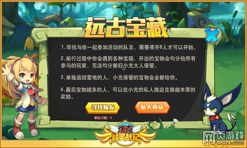只要战力达到4000,就可以开启寻宝之路,与其它勇者一起,进入远古宝藏,斗智斗勇,想办法从抠门的小光那里,获得最多的积分吧!