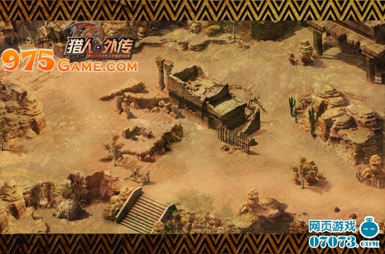 沙漠尽头的戈壁,自然给予它的即是常年的暴晒与干涸。无人知晓那数年前留存至今的遗迹有何秘密,更无人知晓风暴停息后的荒漠里,埋葬了多少生息。沙漠里的生物都有出奇的生命力,隐匿已久的沙虫、暴龙,正待猎人置身于它们的包围中,给其致命一击。