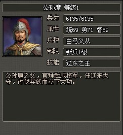 武将技能:战法-辽东之王:释放战法之时对敌人造成惊人的伤害, 同时有几率令敌方眩晕一回合,士气不满的时候则对自己进行鼓舞