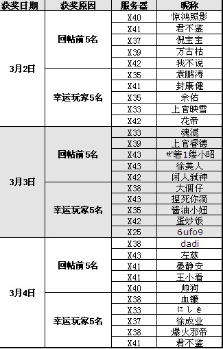 没有得奖的玩家也不要气馁,本活动截止到3月7日,每天都有机会得奖,每天10份奖励坐等你来拿,动作要快哦。