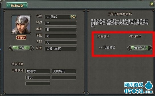2、点击头像后,界面右侧会出现另一个角色的帐号信息