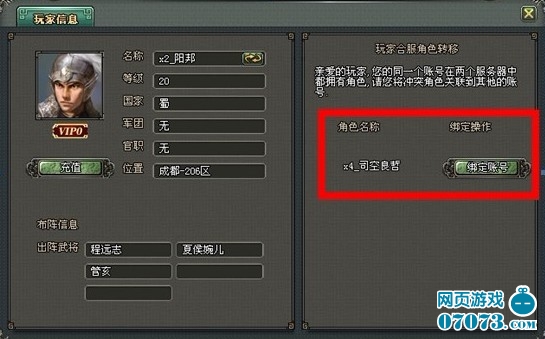 2、点击头像后,界面右侧会出现另一个角色的帐号信息