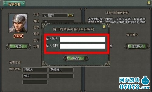 4、点击确定后,界面上方会提示“帐号绑定成功”。(注:表示另一个角色已经成功绑定在新的帐号下,且绑定成功后不可以再次修改,请慎重对待。)