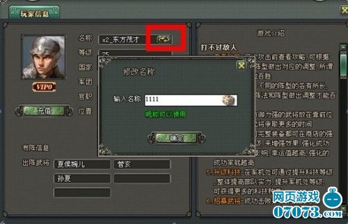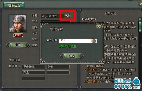 5、点击角色名后面的按钮,会出现修改名字的提示 (注:每个角色只能修改一次)
