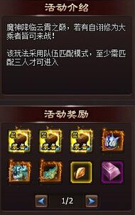 活动略有危险,需组队至少匹配三人才可进入,有机会获得橙色套装、金装及极品红装、橙色套装升级制作材料。