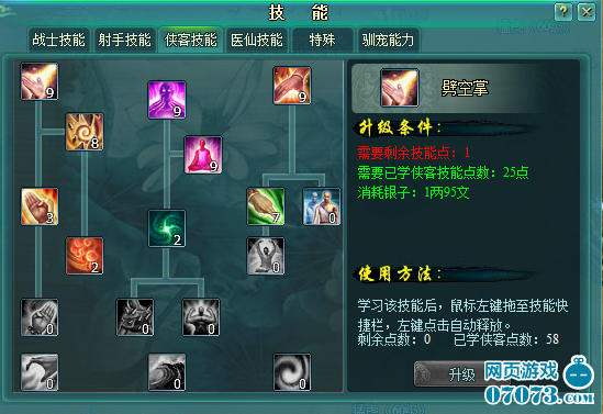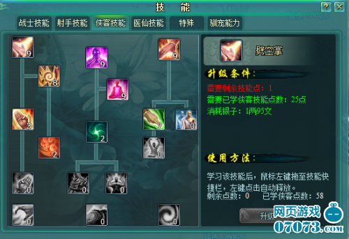 这就是技能面板了,想要转职业的玩家,想必都是老手,对这个都不陌生了
