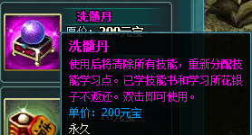 PS:洗髓丹可以在商城购买到,不过要留意啦,之前学习技能花费的技能书跟银两是不会返还的啦。