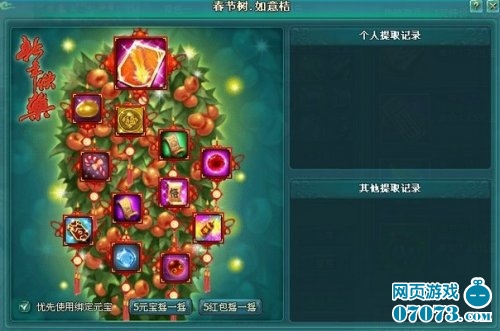 摇动如意桔有几率摇落【幸运仙符】、【祝福仙符】、【福币】、【羽毛坐骑】等珍贵道具,【福币】还可兑换春节时装【龙凤呈祥】哦。此外,摇如意桔时,还有机会摇出满地银票,如意桔树附近的玩家都可以拾取哦。