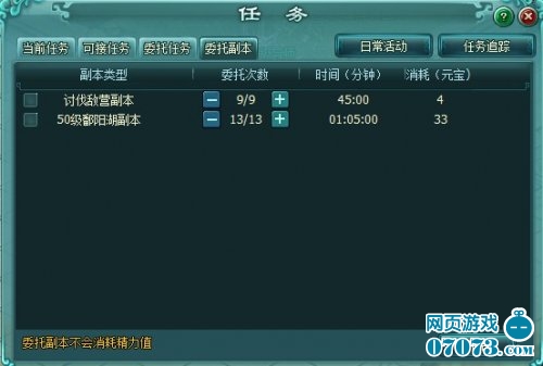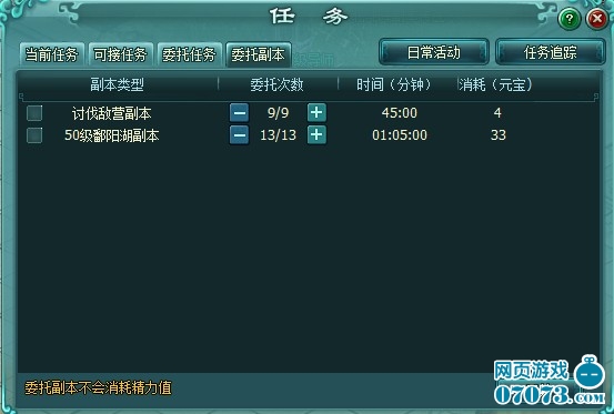 注:完成副本委托可获得副本经验奖励,但不包括副本的道具掉落奖励。