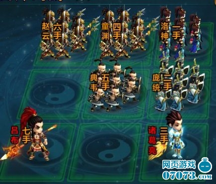1手,3手放谋,技能用乐不思蜀(可定一回合) 2手放最垃圾将,4手放骑,骑可闪避BOSS技能。5手放红加攻,6手不能放骑。注意2点,中间不能多放,要不然会吃技能。6手不能放骑,如果出了闪,那第一排要吃BOSS技能。技能都用45的.