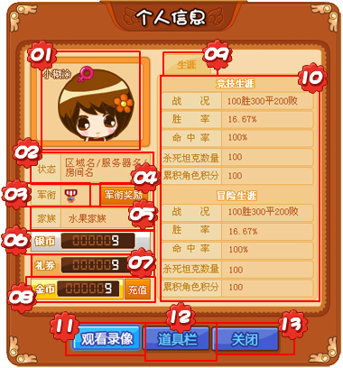角色货币:角色货币分为金币,银币和礼券三种;货币可以在商城里购买道具;