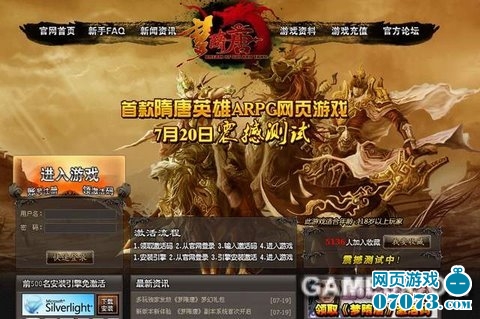 2011年7月20日11:00梦隋唐删档内测火爆开启!