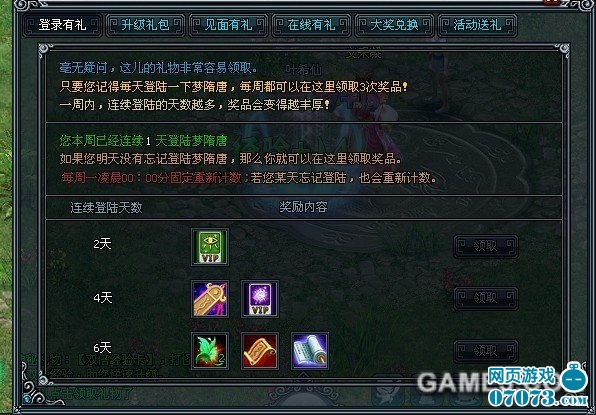 线上的奖励从您建立帐号开始就会出现,共分为四种奖励办法!“见面有礼”“登录有礼”“在线有礼”和“升级有礼”!这些奖励中有【双倍经验】,【生命储蓄】,【魔法储蓄】等大量商城物品!全力祝您前期成长!