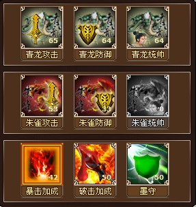 30之后的事情更简单,每天去去联盟副本,加上上面说的持续做下来,38的酒馆建起来,期间打到的蓝色装备不要吝啬,留一套给李牧,其他全卖元宝。30的图很好过的,(当然,前提是科技跟上了)我本人就是一套30蓝还没齐,白虎科技全部38以上,玄武科技全部25,其他全绿装,只培养李牧一个将,强杀40最后一图大BOSS姬喜,轻松推倒,就可以直接给武将换40套装,贪狼套装了,省了一大批元宝。到40了把玄武的将雪藏,开始练青龙。这里着重讲一下,30了是有4个将的,而武将训练位只有3个,这无疑严重影响各方面前进的脚步。所以建议在这个时候冲10远RMB换个1级VIP。玩个游戏花10块钱绝对不多,吃碗面的钱而已。VIP1就有4个武将训练位了,足够了。