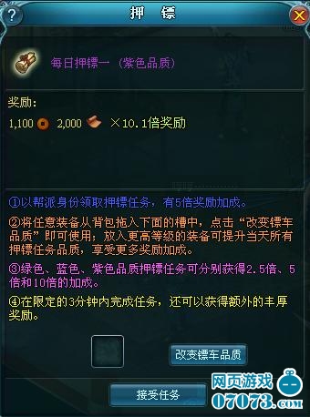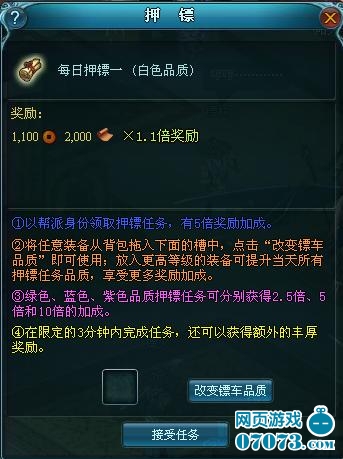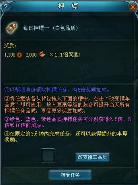 (加入帮派的玩家领取押镖任务全天5倍奖励加成!)