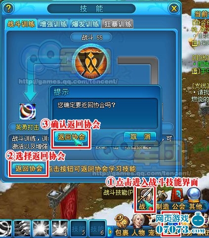 任务领取等级限制:30级 我们通常叫这个为“师门”任务,这个任务在所有回合制游戏中就是非常重要的。那么魔幻大陆中的协会任务又有什么特色呢? 1、每天可以做十环协会任务。 2、做协会任务可以得到大量经验。随着环数的增加,经验奖励会越来越高。 3、每完成一环协会任务都能获得1点活跃度,每日完成一轮协会任务还将获得协会声望。用以兑换协会套装。 任务流程 1、在主菜单区点击“技能”--》“战斗”,在战斗技能界面有返回协会的快捷按钮。组队状态下,队长不能使用返回协会功能。队员在离队状态下可使用返回协会功能。 2、到协会内找到相对应的NPC接取协会任务。依次是骑士协会、法师协会、火枪协会、战士协会和牧师协会。 3、协会任务类型: