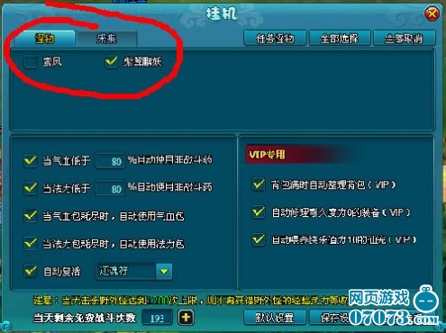 我们来看挂机设置,梦幻飞仙的挂机界面是这样滴