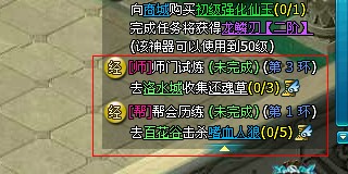 第六,每天的师门循环任务和帮会循环任务不要怕麻烦,一定要全部做完,一直做到接不了为止,这两个任务每一环的经验是逐级递增的,最后的总经验相当可观。