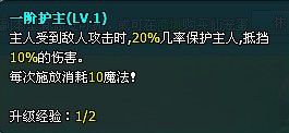③出战仙宠拥有一个一阶护主(lv1)技能。技能升级经验为1/2.