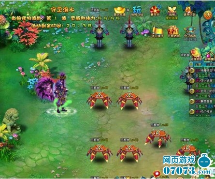 1.活动开始后,符合等级条件的玩家会弹出邀请面板,玩家可以传送到城主灵威仰所在位置保护城主,也可以直接到达洛水城的左下方和右上方抵挡妖怪。