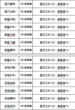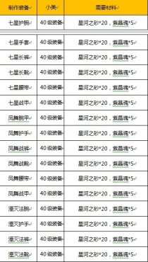 下图为直接制造40级紫色装备需要的材料: