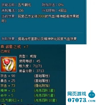 分开来说,先说奶妈。作为奶妈,天师在队伍中的作用就是加血,五气朝元这个技能必须练高的,技能CD不是很长,而且吃药有CD无形中提高了五气朝元的重要性,妙手回春配合即将开放的觉醒虽然对天师有所削弱,但群加的优势和高血量是无可替代的。SO,能洗出技能的武器和戒指,如果都洗出精神+五气朝元的话,那么你将是挑战高难BOSS的首选队员。图纸、紫魂、星辰石在向你招手!