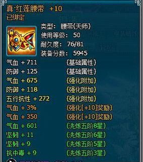 其中防具套装品质提升后加的是气血和防守属性、武器提升品质之后加的攻击属性、饰品提升品质之后加的是气血和法力属性、戒指加的是攻击和暴击属性。