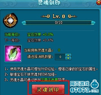 二、如果你背包里有灵魂水晶的话,直接点击【灵魂刻印】即可使用