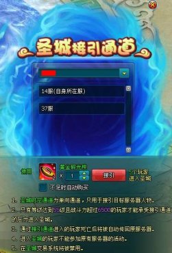 2、圣城接引进入圣城后玩家可点击圣城中央的接引阵法,对指定服务器打开接引通道。