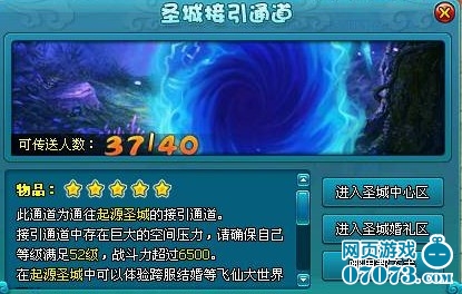 指定服务器的洛水城中央将出现一个接引通道,其他玩家可通过该通道进入圣城。