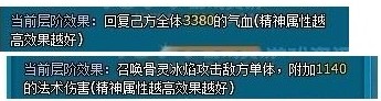 正是靠这个方法,把精神的单项属性堆到了700。请看一看以下2个技能的效果吧: