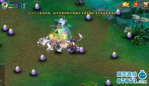 在梦幻飞仙中,每天的特定时间将会开启天降异宝,在洛水城地图的左下方和右上方,百花谷全地图,都会随机出现星河碎片,