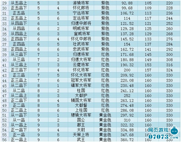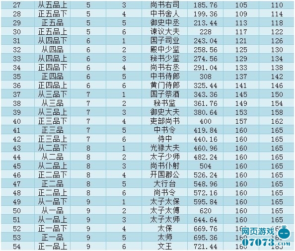 文官官职主要由“威望”生成,威望越高,官职就越高,俸禄也就也高。最高可达“文王”官职(以后可能会增设君王、帝君等官职)。