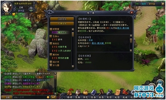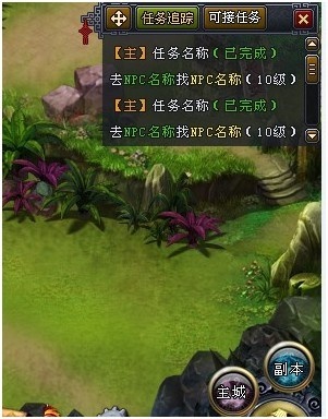 找到指定NPC,点击则可弹出任务名称,点击该任务名称,通过与NPC对话则可接该任务。若完成任务,则可点击该栏中的“完成”按钮,获得该任务的任务奖励。