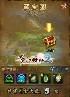 再忙也要上线露露脸,别的可以不做但是挖宝你一定不能错过!使用不同等级的藏宝图可以挖出不同等级的宝藏,强化石、鉴定符、悟性丹等大量道具全看人品,还有几率遇到地下BOSS,快叫上小伙伴们殴打BOSS搜刮宝藏吧!