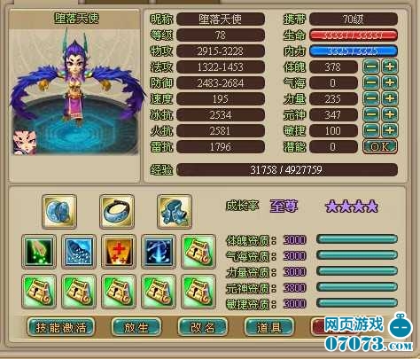 BB是78级的魔翼 带的技能 和各属性 请看下图