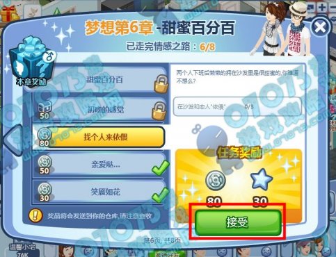 完成方法:进入到正在热恋的恋人家里。在连人家中找到沙发,点击沙发进行互动。选择“依偎”。记住哦!要进行3次依偎才能通关哦!