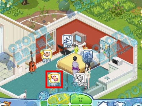 完成方法:进入恋人的家中,点击连人家中的双人床选择“亲热”进行互动。