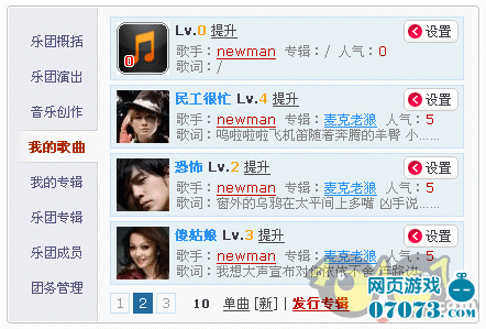 在“排行榜”中的乐团以声望、演出数、歌曲数、乐团资金、乐团人数来排名。