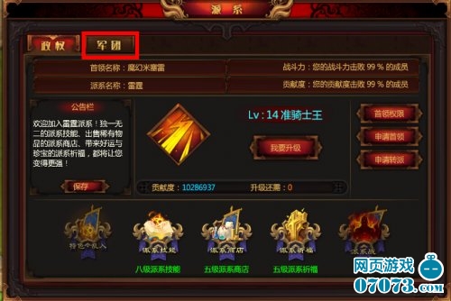 军团依附于派系。军团等级越高,可容纳的人数越多。加入军团的人可以每天领取军饷,骑士等级越高,领取军饷越多。