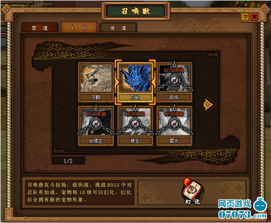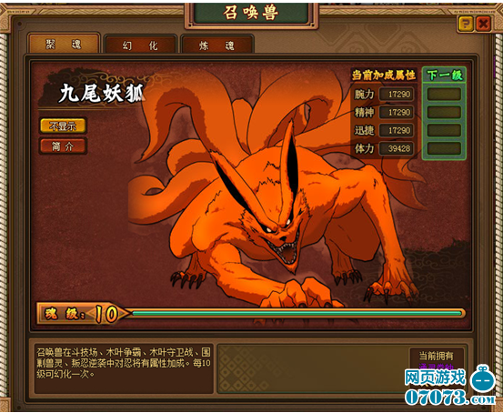 每种召唤兽都有10级,从一尾守鹤开始升级,升至10级可以开启二尾猫又