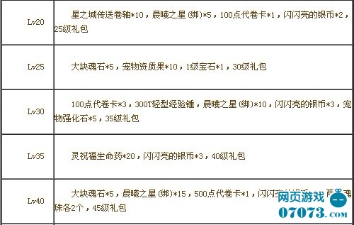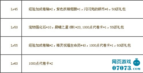 活动内容:当玩家创建角色进入游戏时,会得到免费赠送的一个1级新手礼包。该礼包随着角色等级的提高,可每5级一次获得对应等级的奖励,一直持续到60级。
