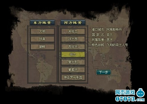 像上图所示荷兰击败英格兰舰船的戴拉号,每个国家的所产的特产物种也是不同的,每个阵营有自己特色的攻击战术,装备,物资等,而且随着级数的提升,可以代表自己的阵营与别的阵营进行国战,占地掠财。