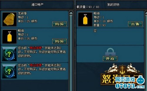 怒海风云的贸易系统应该是这款游戏的特色之一了,在一个港口购买货物,到另一个港口贩卖,赚取当中的差价,而且每个港口的特产也是不同的,符合港口当地的特色,给玩家带来了趣味性。
